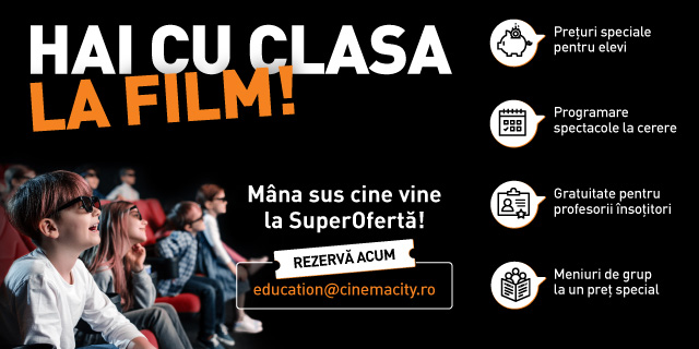 Pentru mai multe informații despre oferta pentru grupuri școlare la Cinema City, vă rugăm să ne contactați la: [email protected] sau [email protected]
