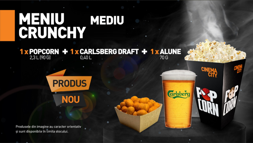 MENIURILE CRUNCHY SUNT DISPONIBILE EXCLUSIV ÎN LOCAȚIILE CINEMA CITY din IAȘI (Iulius Mall, Moldova) și București (AFI Cotroceni)