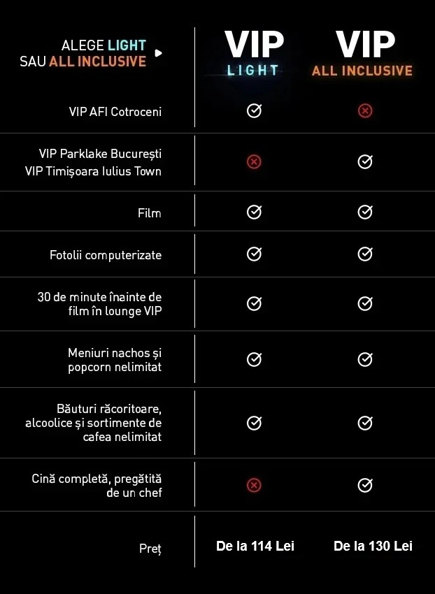 *După începerea ultimului film, barul VIP va mai ramane deschis timp de 30 de minute, dupa care comenzile nu vor mai fi posibile.